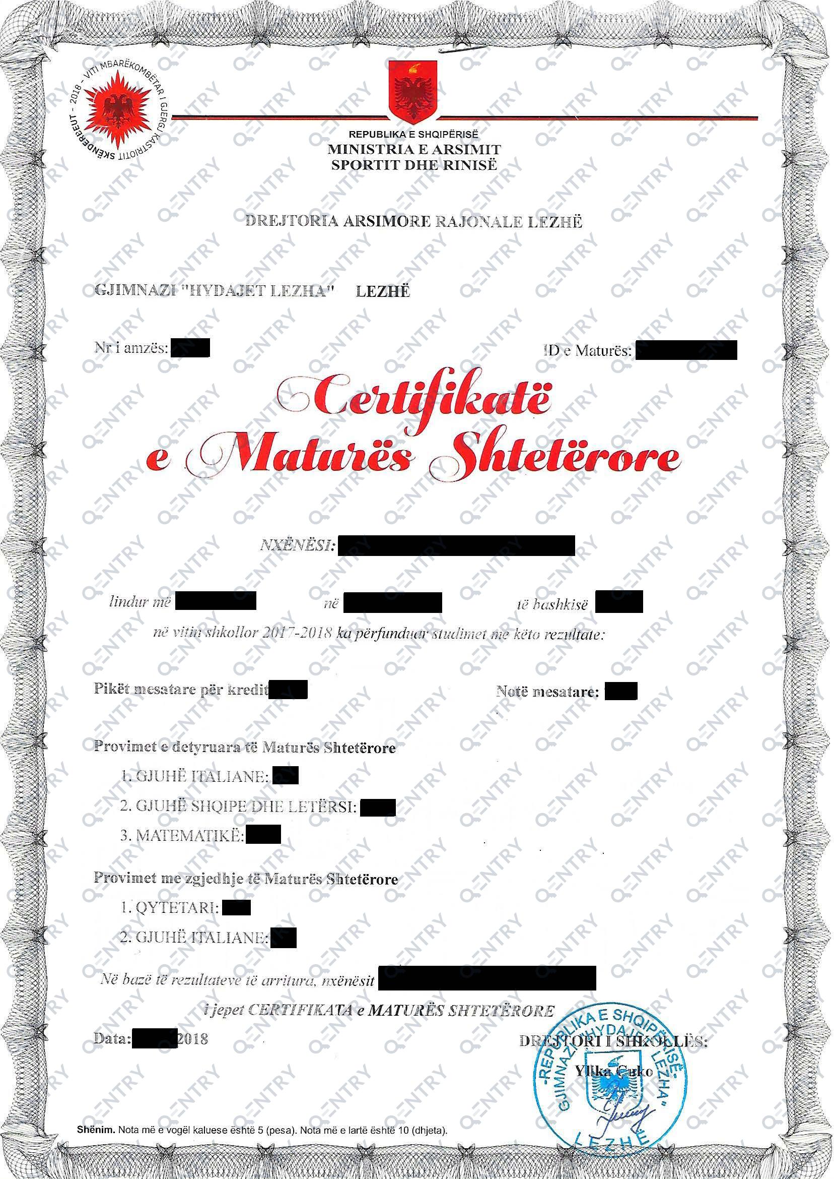 Awarding period: at the end of secondary school, after the students pass the matura exams. First session in July, second session in September.