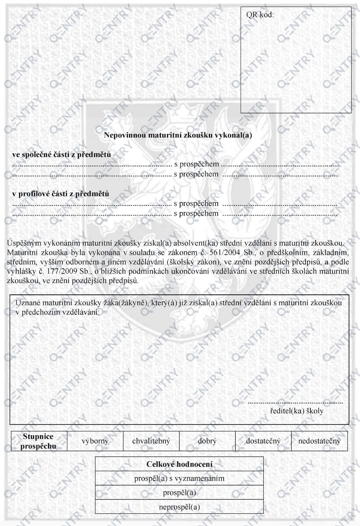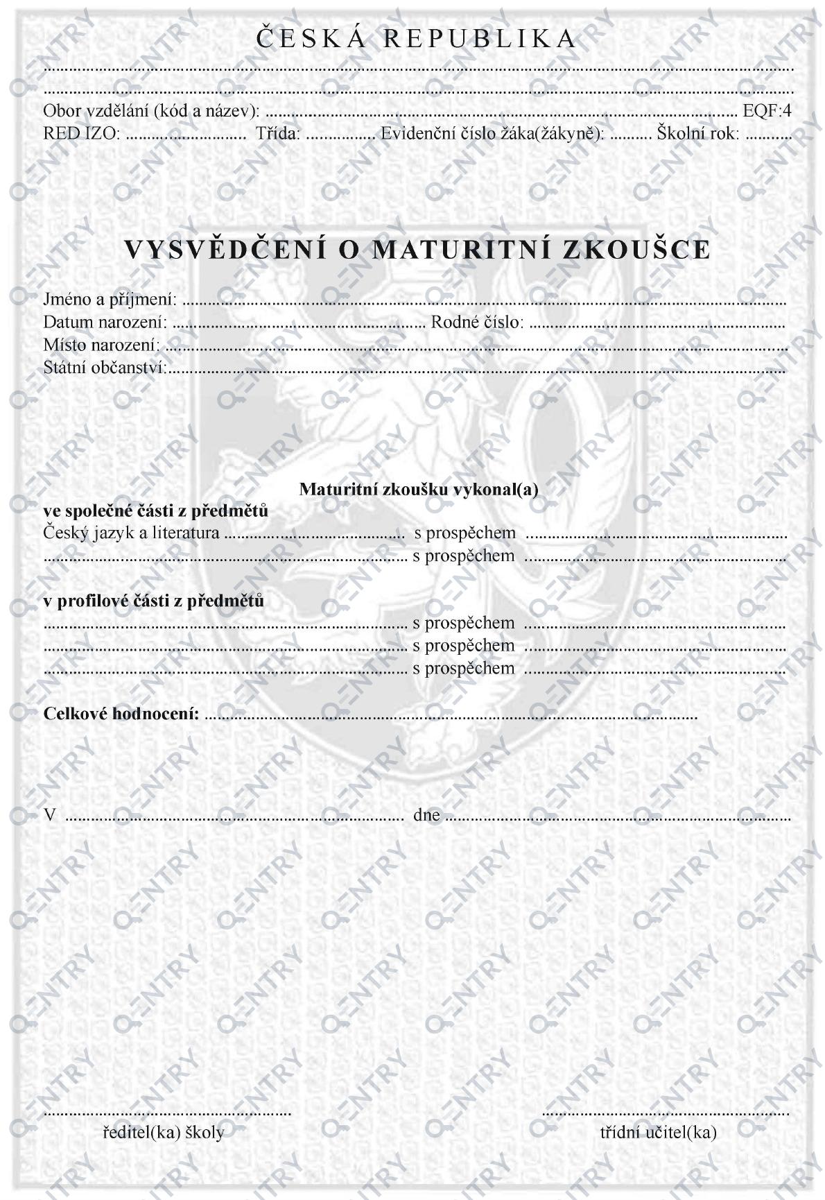 This qualification is provided through 8, 6, or 4 years at secondary school - depending of the type of school (gymnazium or other secondary schools) - with school leaving exams.