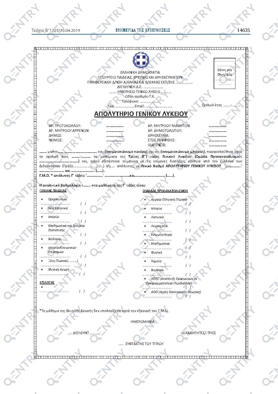 ΑΠΟΛΥΤΗΡΙΟ ΓΕΝΙΚΟΥ ΛΥΚΕΙΟΥ