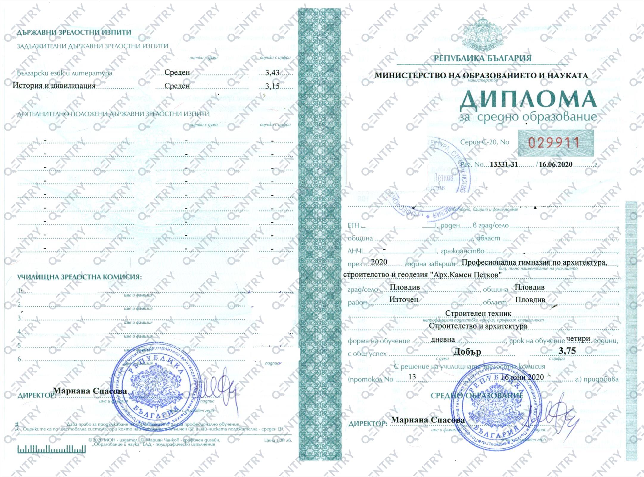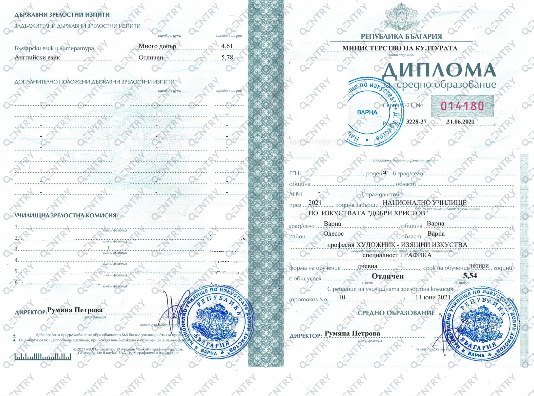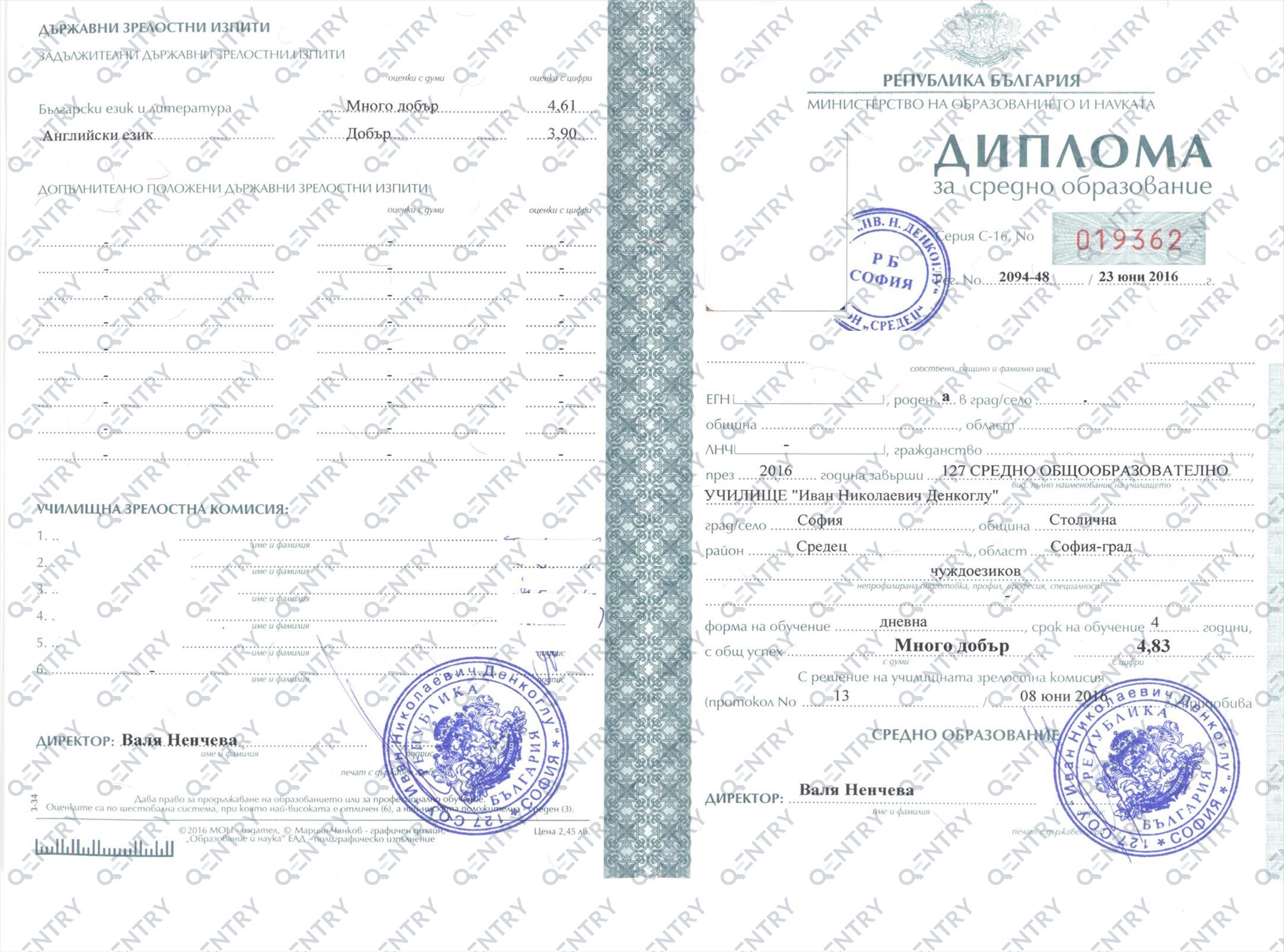 The diploma for secondary education is being signed by all members of the school matriculation commission and the school director and sealed with the state coat of arms. They are verified by the Ministry of Education and Science and uploaded on the Register of secondary education students graduated after 2007.