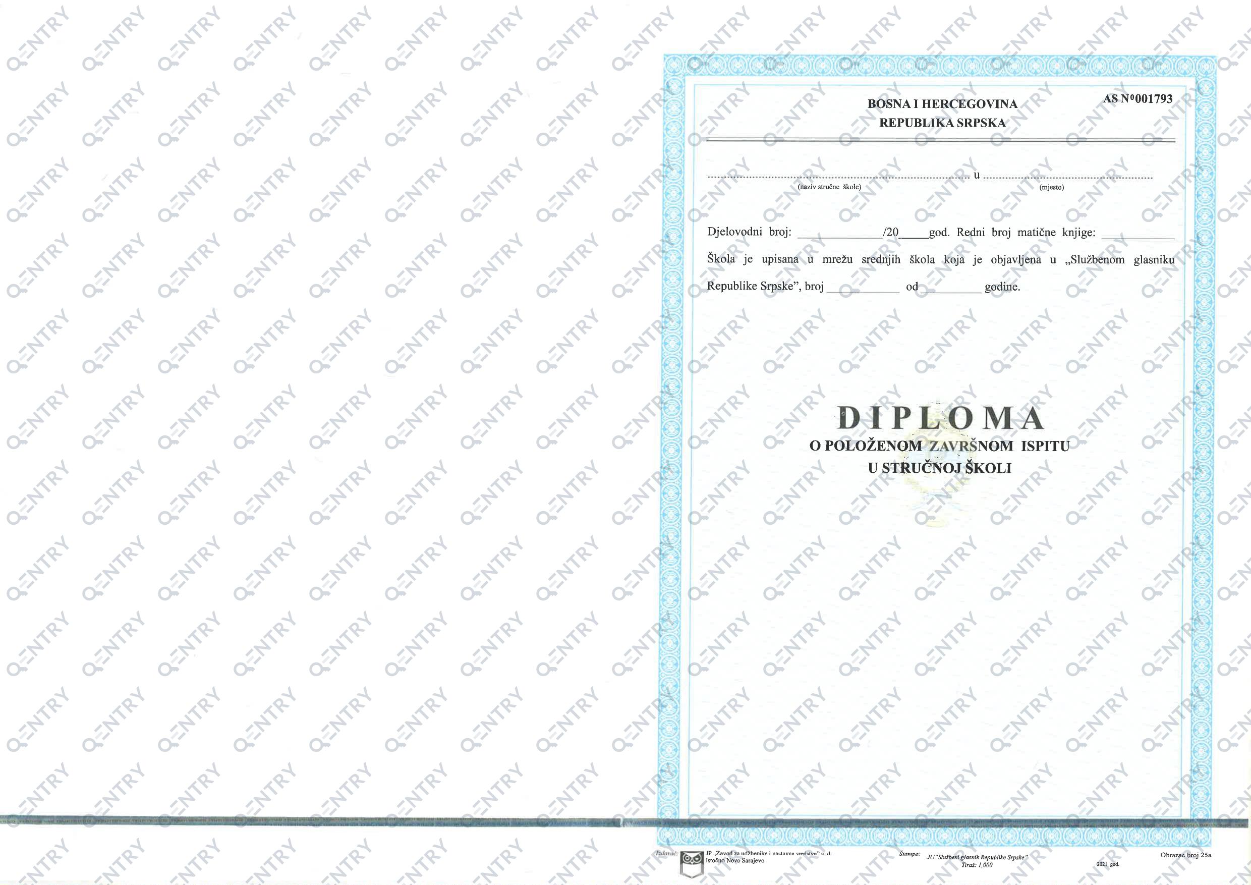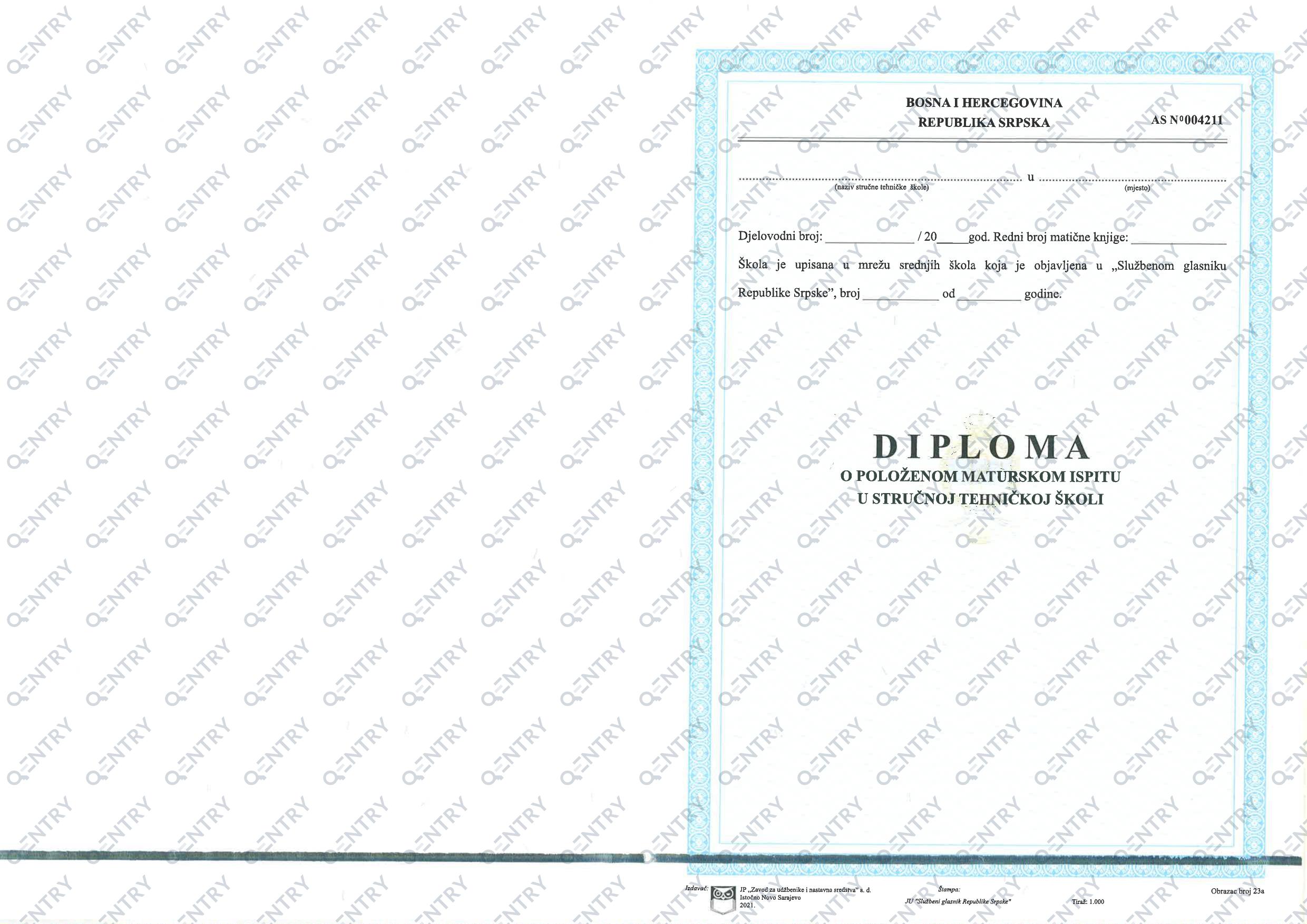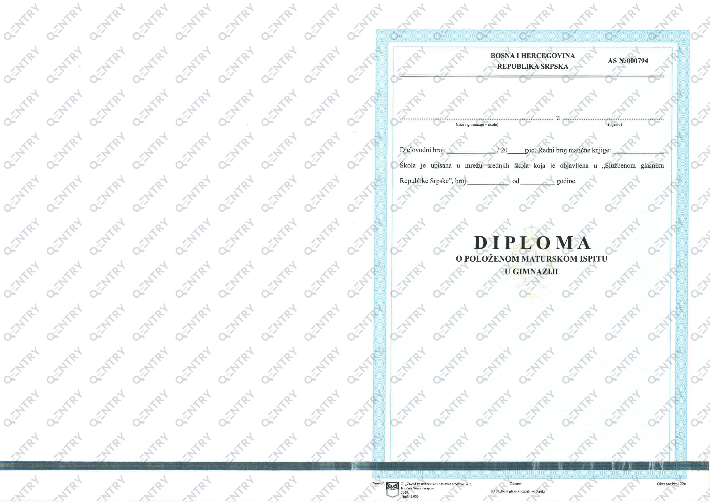 Diploma o završenoj srednjoj školi u Republici Srpskoj