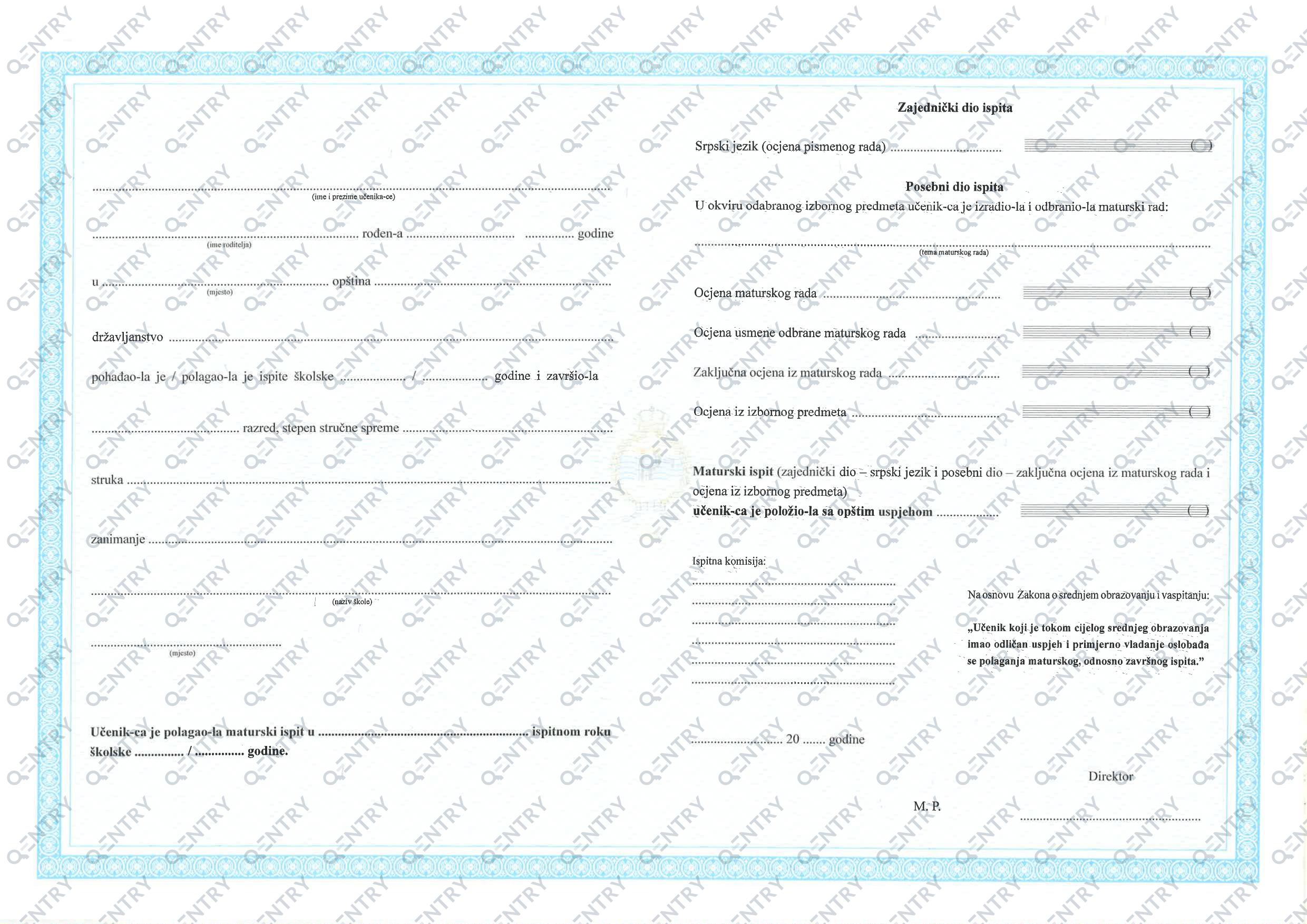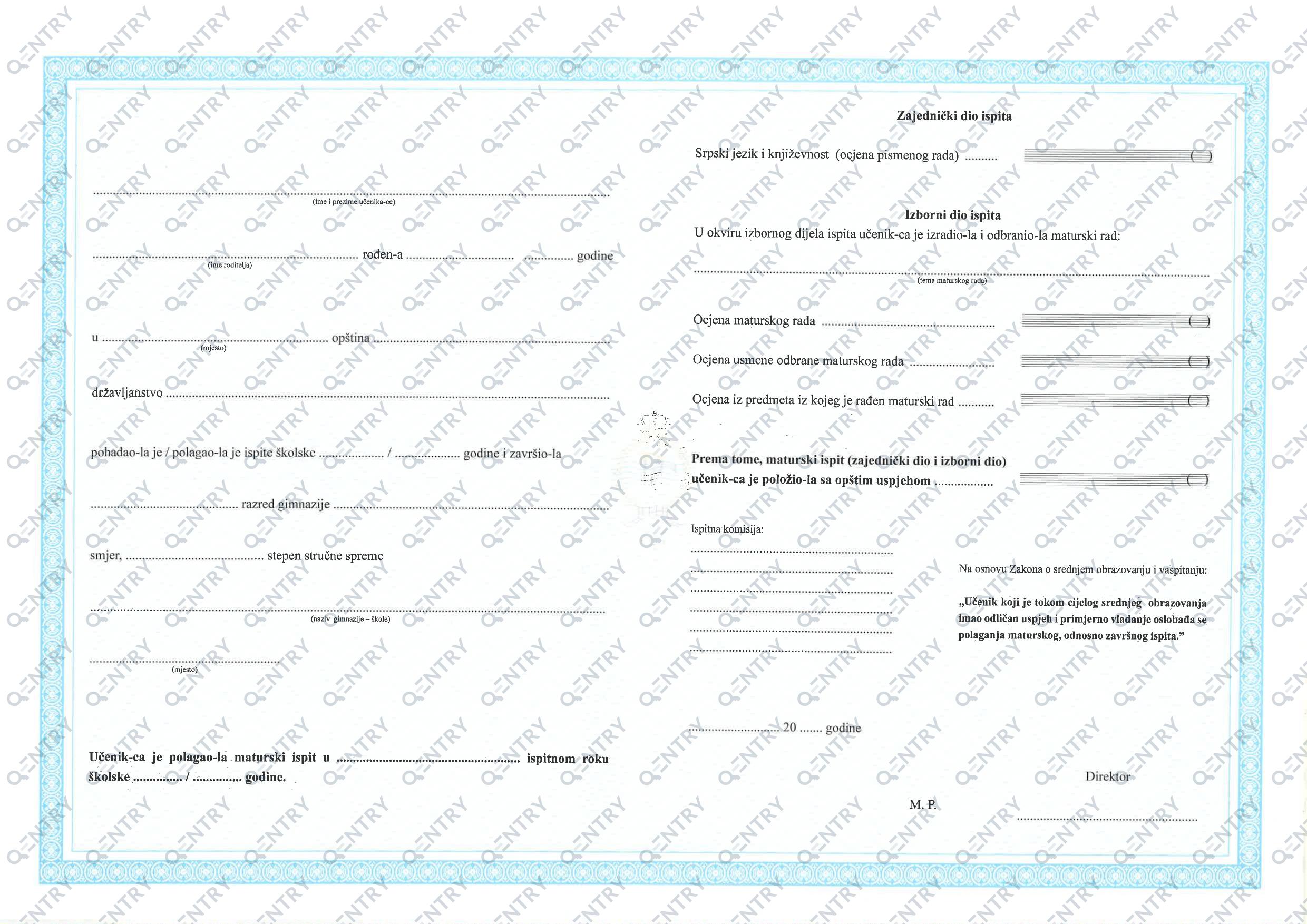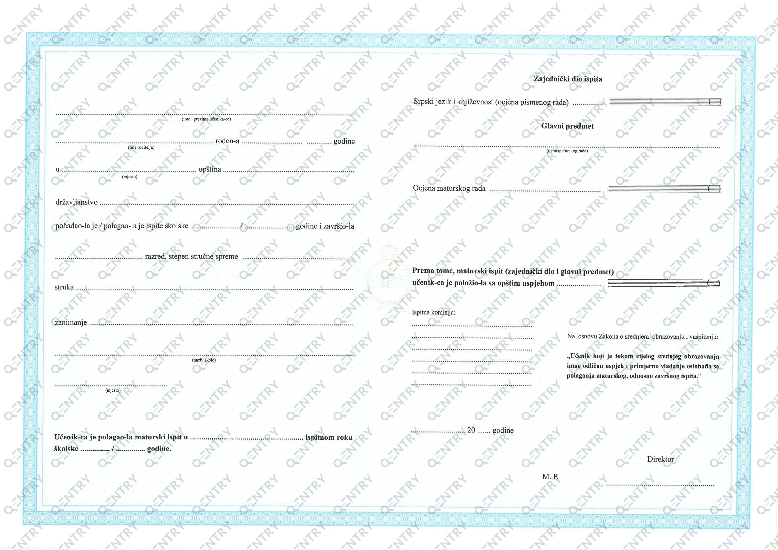 Diploma o završenoj srednjoj školi u Republici Srpskoj