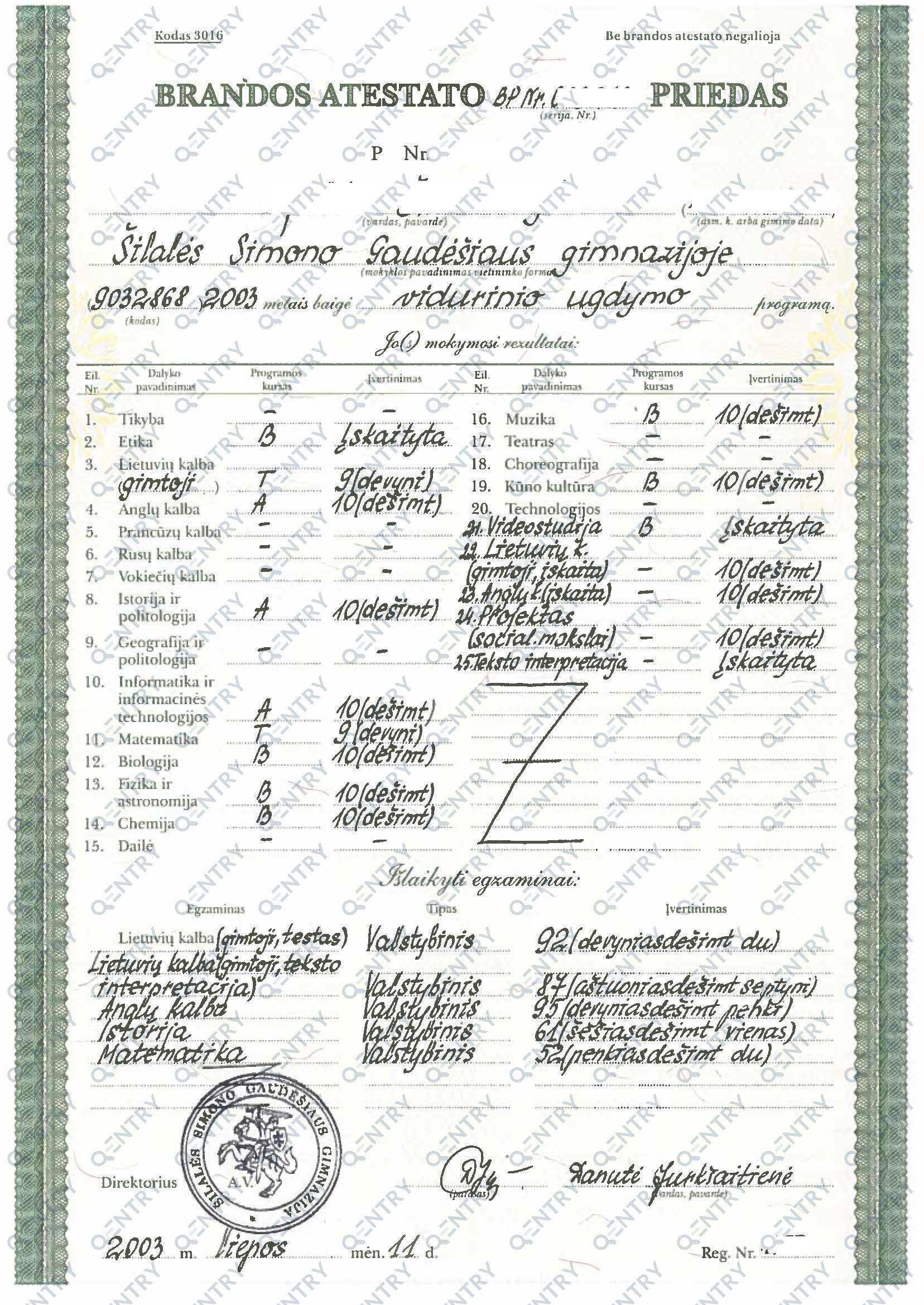 Name of the qualification in original language